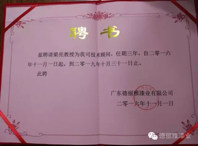 11月,廣東德麗雅漆業(yè)有限公司總經(jīng)理江建東先生與廣東工業(yè)大學(xué)簽訂產(chǎn)、學(xué)、研合作協(xié)議,正式成立產(chǎn)學(xué)研聯(lián)合實(shí)驗(yàn)室。
